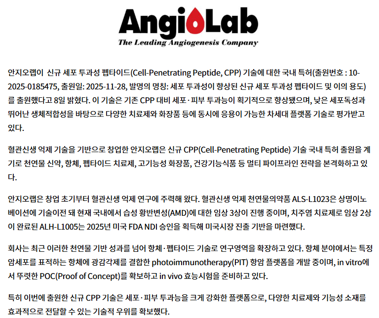 ¾ÈÁö¿À·¦, ¼¼Æ÷ Åõ°ú¼º ÆéŸÀÌµå ±â¹Ý ±â¼ú·Î ½Å»ç¾÷ È®Àå