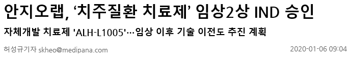 ¾ÈÁö¿À·¦, ¡®Ä¡ÁÖÁúȯ Ä¡·áÁ¦¡¯ ÀÓ»ó2»ó IND ½ÂÀÎ