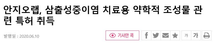 ¾ÈÁö¿À·¦, »ïÃ⼺ÁßÀÌ¿° Ä¡·á¿ë ¾àÇÐÀû Á¶¼º¹° °ü·Ã ƯÇã Ãëµæ