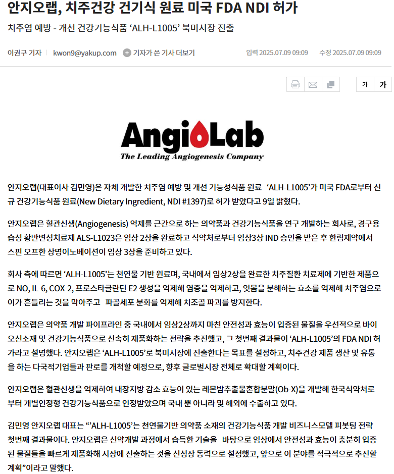 ¾ÈÁö¿À·¦, Ä¡Áְǰ °Ç±â½Ä ¿ø·á ¹Ì±¹ FDA NDI Çã°¡