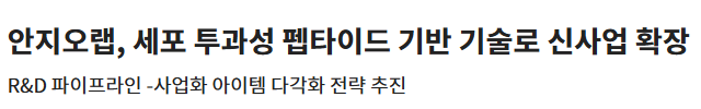 ¾ÈÁö¿À·¦, ¼¼Æ÷ Åõ°ú¼º ÆéŸÀÌµå ±â¹Ý ±â¼ú·Î ½Å»ç¾÷ È®Àå